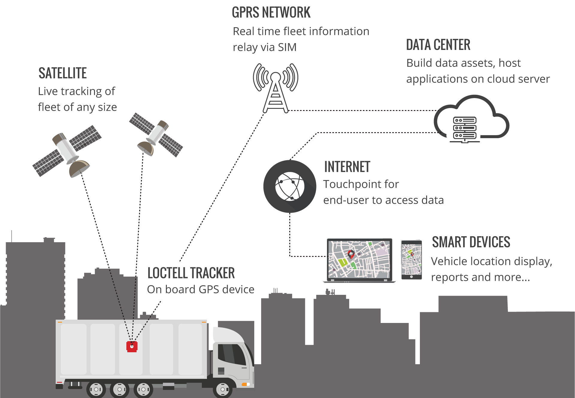 Loctell's Fleet Management system uses a combination of GPS and GSM technology, telecom network, internet, digital mapping and tracking devices to assemble a usable picture of the vehicle and